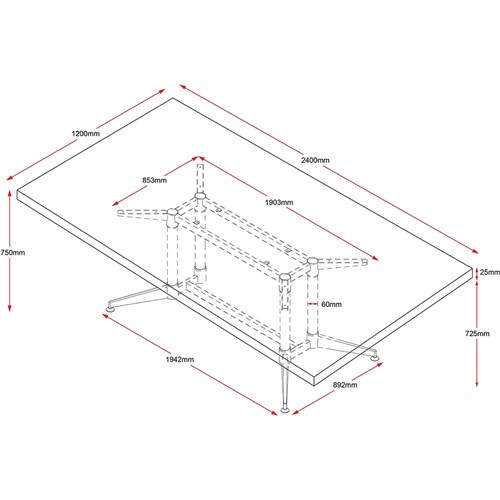 Rapidline Typhoon Boardroom Table 750Hx1200Wx2400mmD Beech Top Black Frame