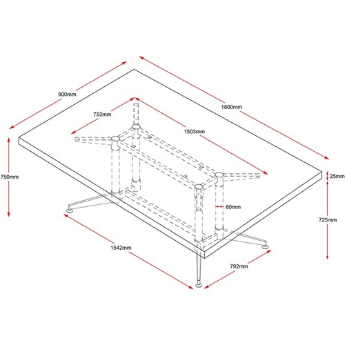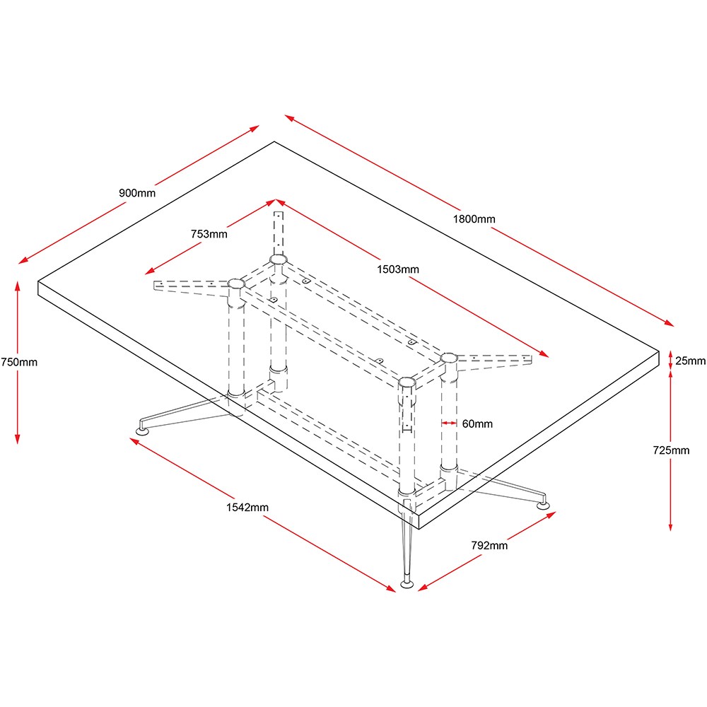 Rapidline Typhoon Meeting Table 750Hx900Wx1800mmD Beech Top Black Frame