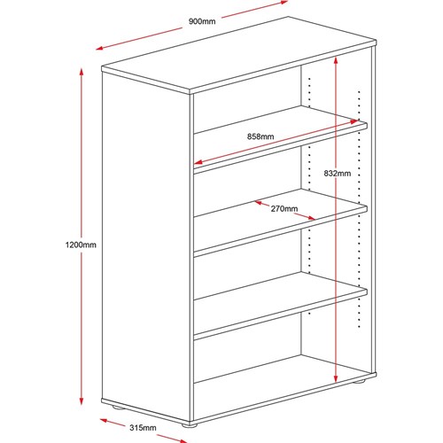 • Rapidline Worker Bookcase 4 Shelves 1200Hx900Wx315mmD Natural Oak and Ironstone