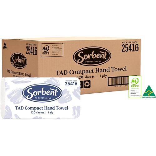 Sorbent Professional TAD Compact Hand Towel 1 Ply 120 Sheets Carton of 20