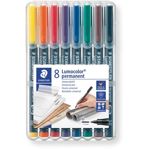 STAEDTLER 317 LUMOCOLOR OHP PENS PERMANENT MEDIUM 0.8-1.0MM 8 ASSORT WLT