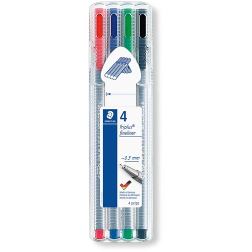 STAEDTLER TRIPLUS 334 Fineliner Assorted Colours Pack of 4