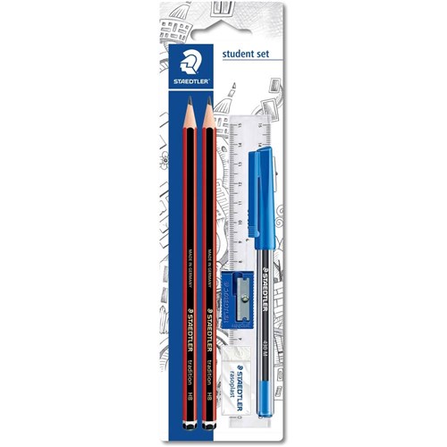 • Tradition® set contains: 2x HB graphite pencils, 1x Rasoplast® small eraser (526 B40), 1x Stick 430 ballpoint pen (430 M-3), 1x 15cm ruler & single hole plastic sharpener.