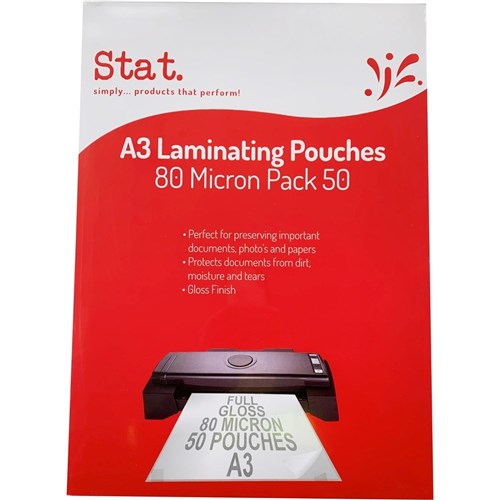 STAT LAMINATING POUCH A3 80 Micron Clear Pack of 50