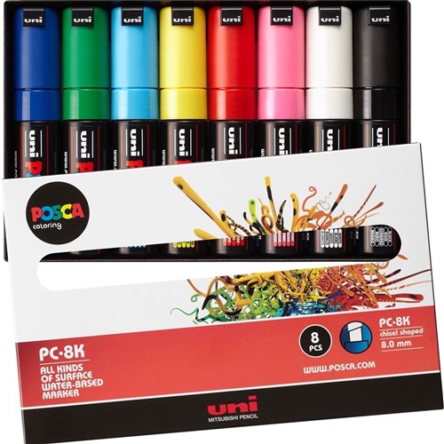 UNIBALL POSCA POSTER MARKER 8mm Chisel Assorted Pk8