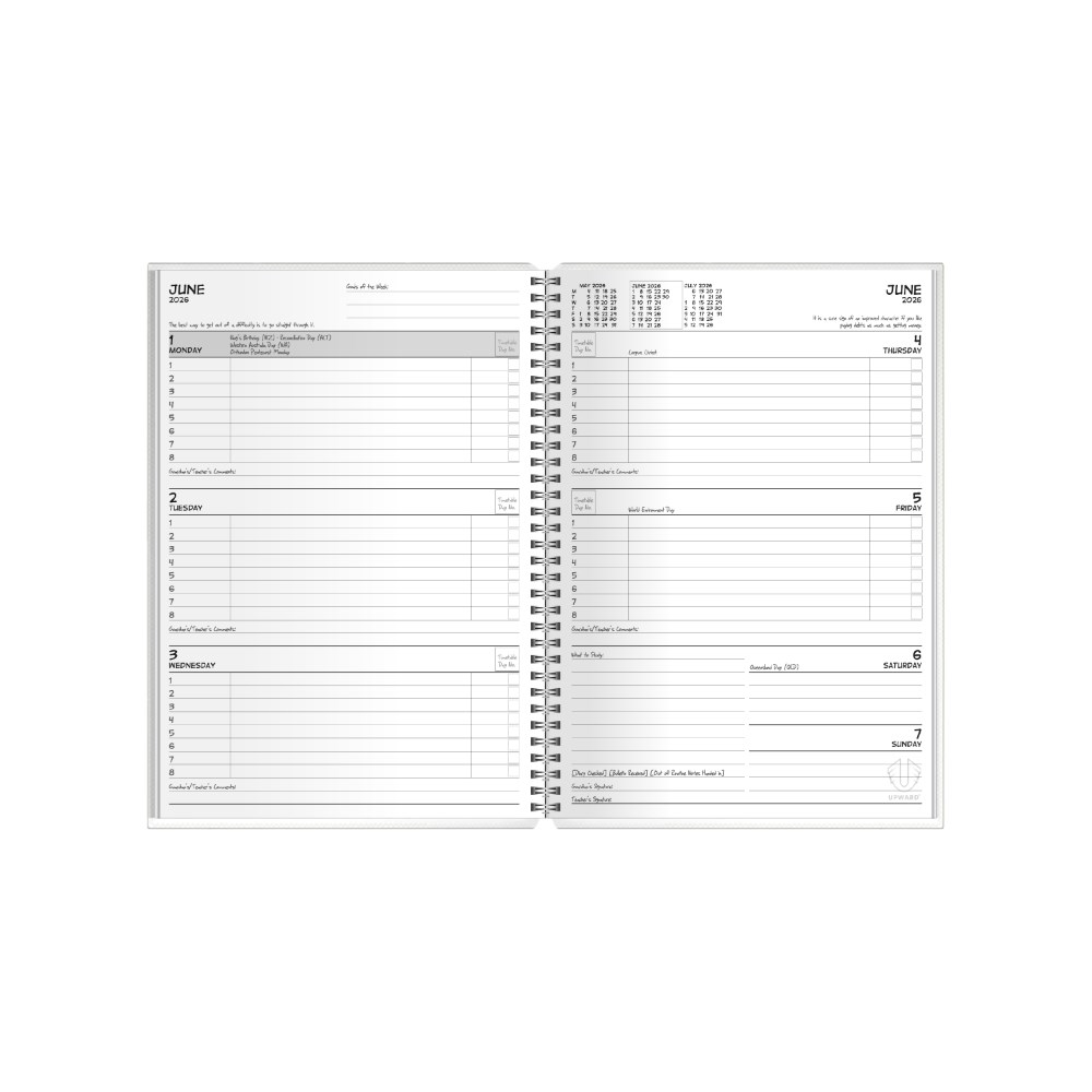 • The School Diary assists in setting positive study practices.
