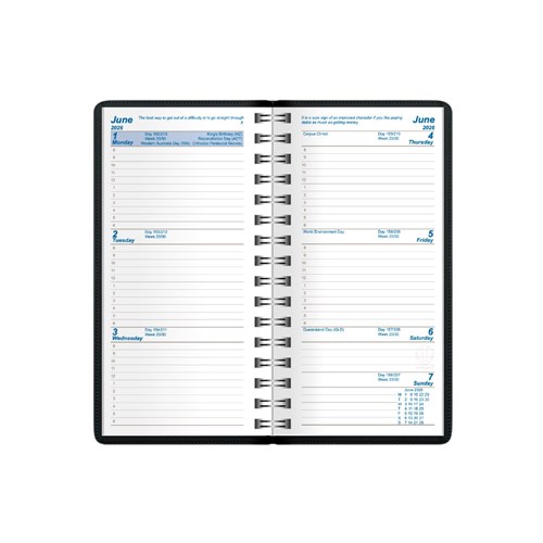 Upward Superior Wire-O Pocket 148 x 74mm Diary Week To View Black