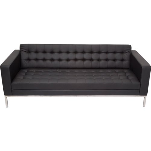• Elegant reception area arm chair with button finish to black PU, easy clean upholstery.