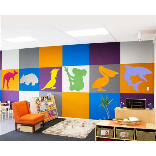 • Australian animal adhesive backed tile brings colour, fun and function while reducing noise in learning environments.