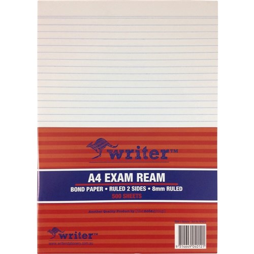 WRITER A4 EXAM PAPER 55gsm Paper 8mm Ruled