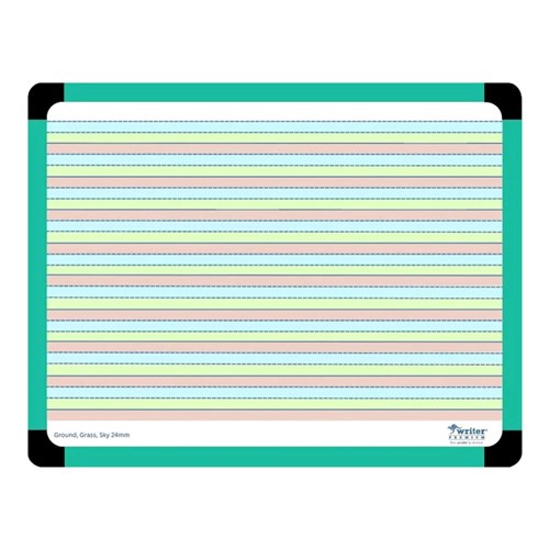 • 1 side Ground/Grass/Sky 24mm ruled and 1 side plain. Green frame with black corners.